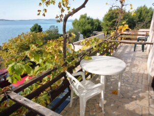 Lägenhet med två sovrum nära stranden Tkon, Pašman (A-336-a)Lägenheten kan rymma 4 gäster. Sängarna är belägna i 2 sovrum, inom 48m2. Gästerna kan njuta av havsutsikt från den privata terrassen. Maten kan tillagas med hjälp av grillen som delas med andra gäster också. Ingår i priset: turistskatt, slutstädning, par...Lägenhet